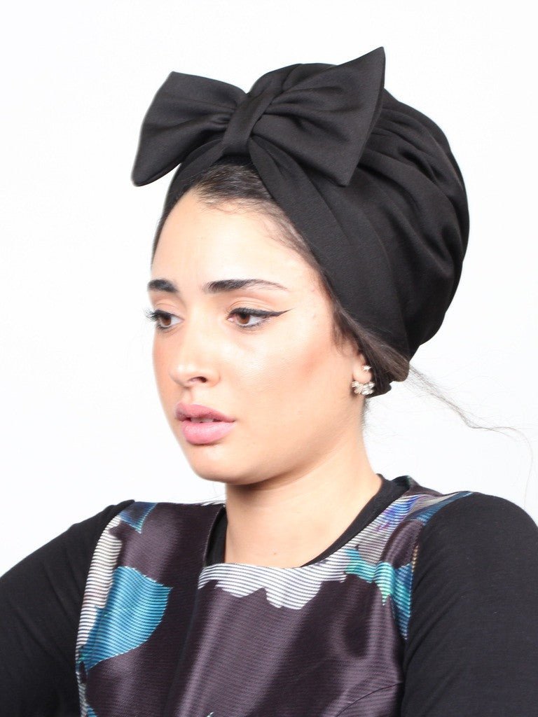 Full coverage bow turban. One size fits most adult heads. One standard size