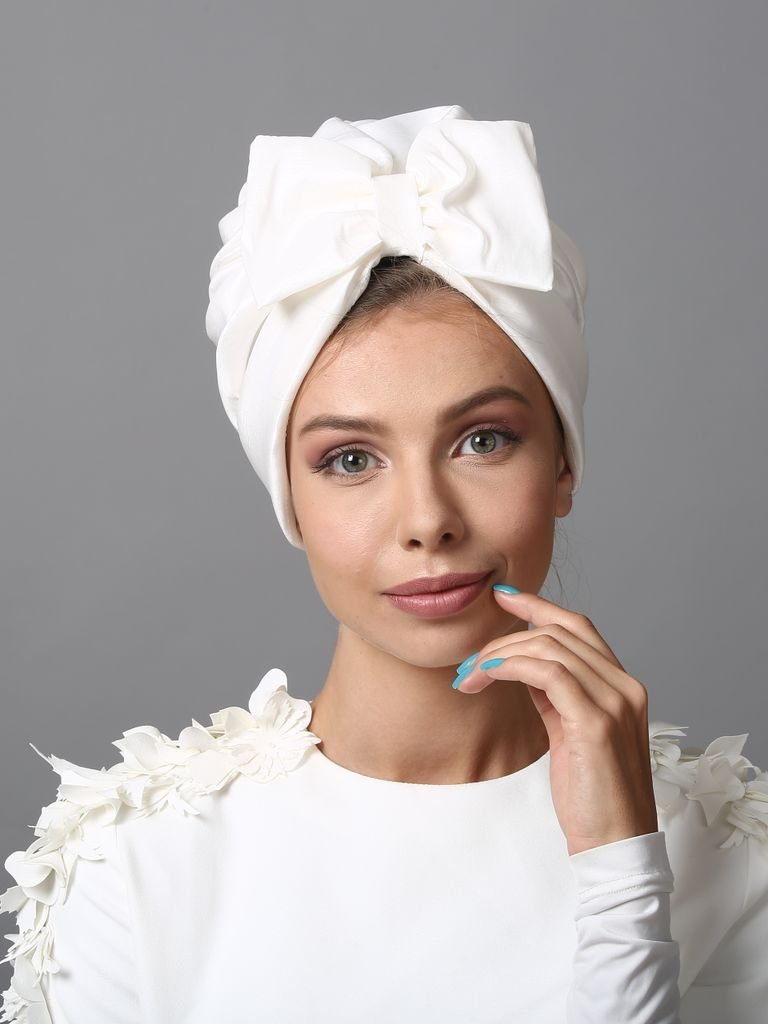 Full coverage bow turban. One size fits most adult heads. One standard size